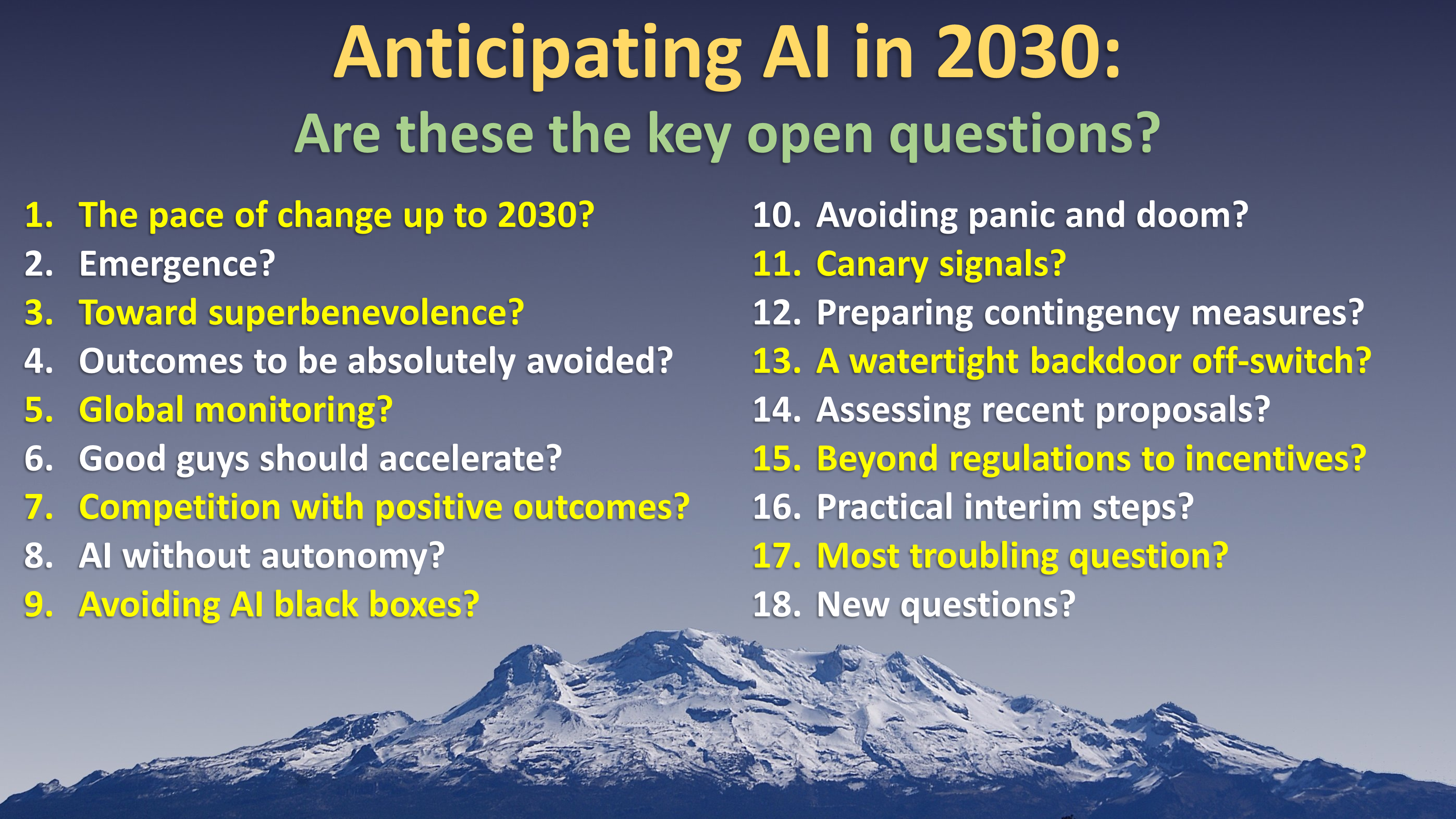 The open questions in this survey are intended to support and enhance the public discussion about the transition from today’s AI systems to the potentially much more powerful AI systems that may emerge in the years leading up to 2030.